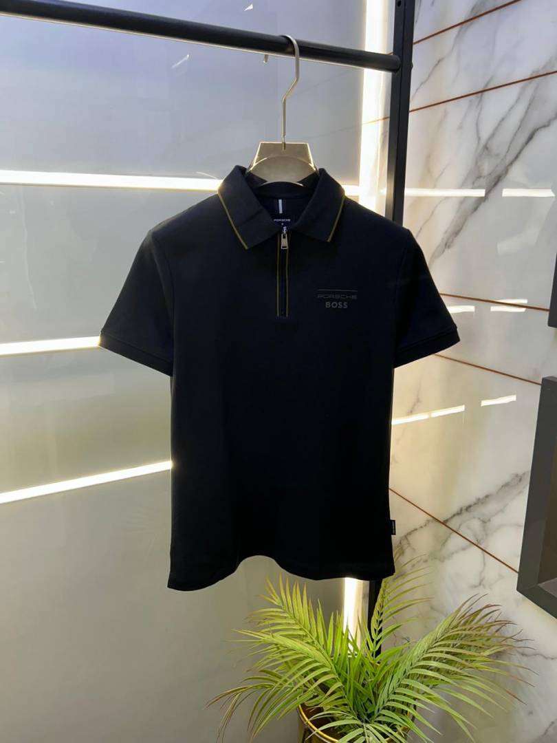 Boss x Porsche Edition Zipper Black Collar Neck Premium Polo T-shirt F3430-B3