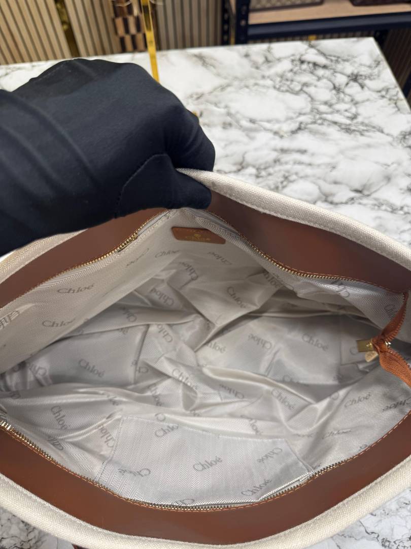 Chloe Woody Canvas Medium Logo Tote Bag ( 355)