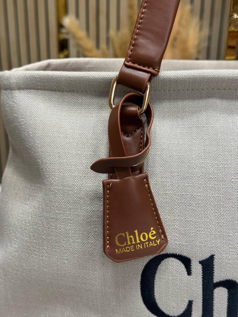 • Chloe Woody Canvas Medium Logo Tote Bag ( 355)
