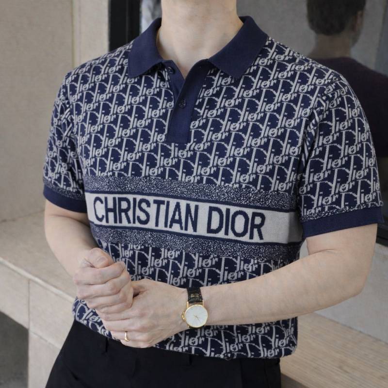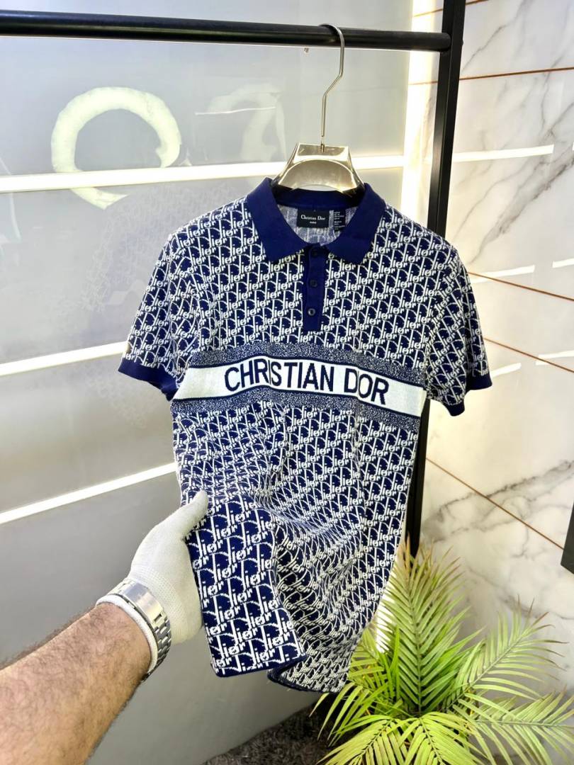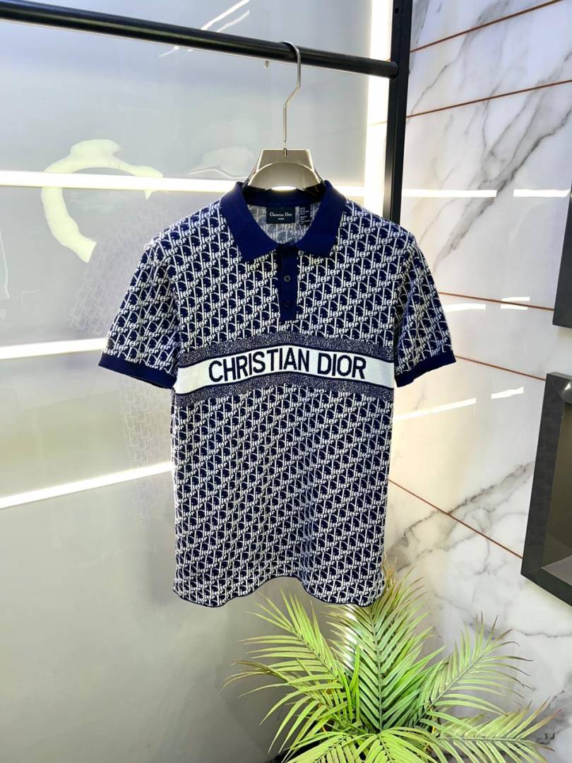 Christian Dio r Imported knitted Monogram Super Premium Navy Collar Neck Polo T-shirt F3481-NY