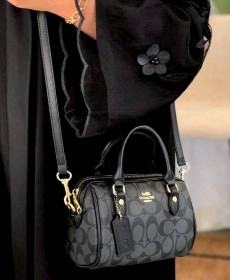 COAC_H Black Rowan Logo Leather Small Satchel with box 724
