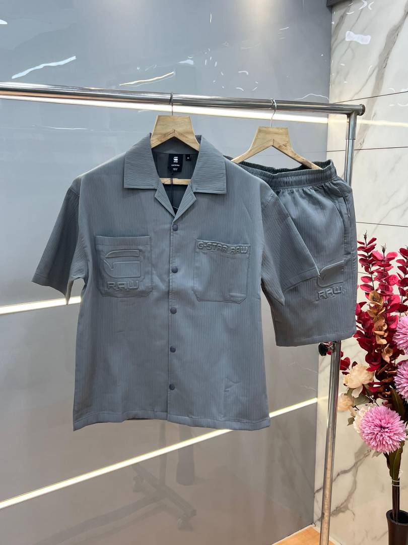 Gstar Grey Premium Imported Cotton Lycra Fabric Emboss Design Cord Set 3819