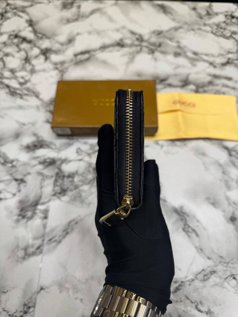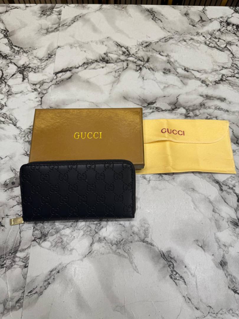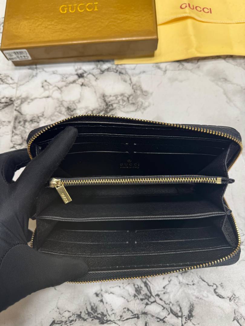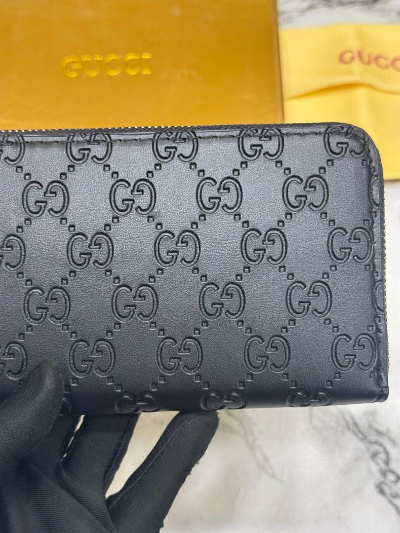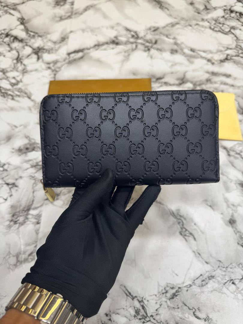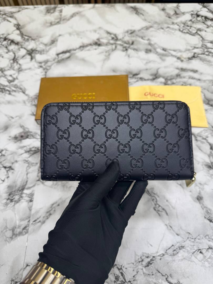 • Gucc_i GG Embossed Premium Quality Zip Around Wallet (Black)