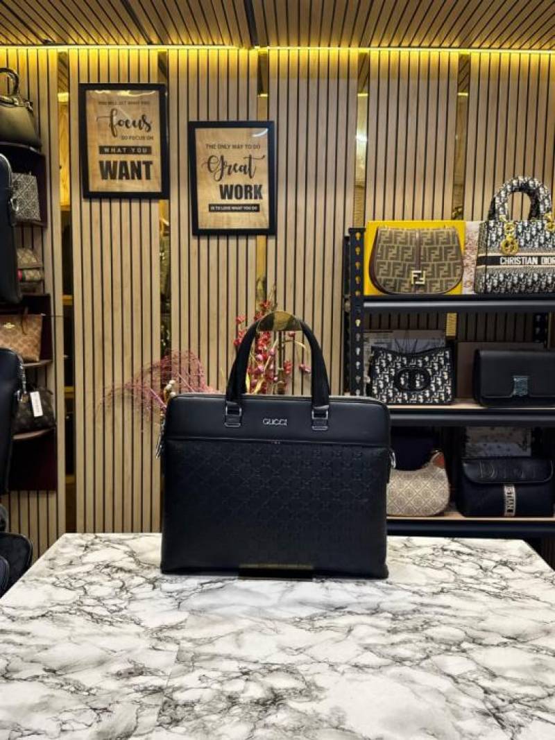 • Gucc_i Signature GG Embossed Leather Laptop Bag (G6622-5)