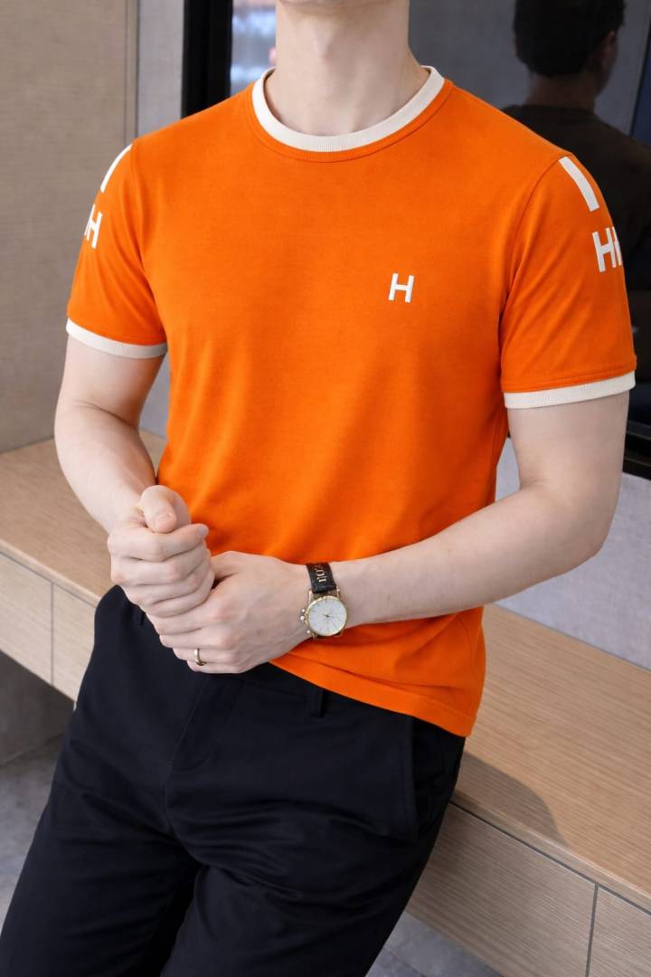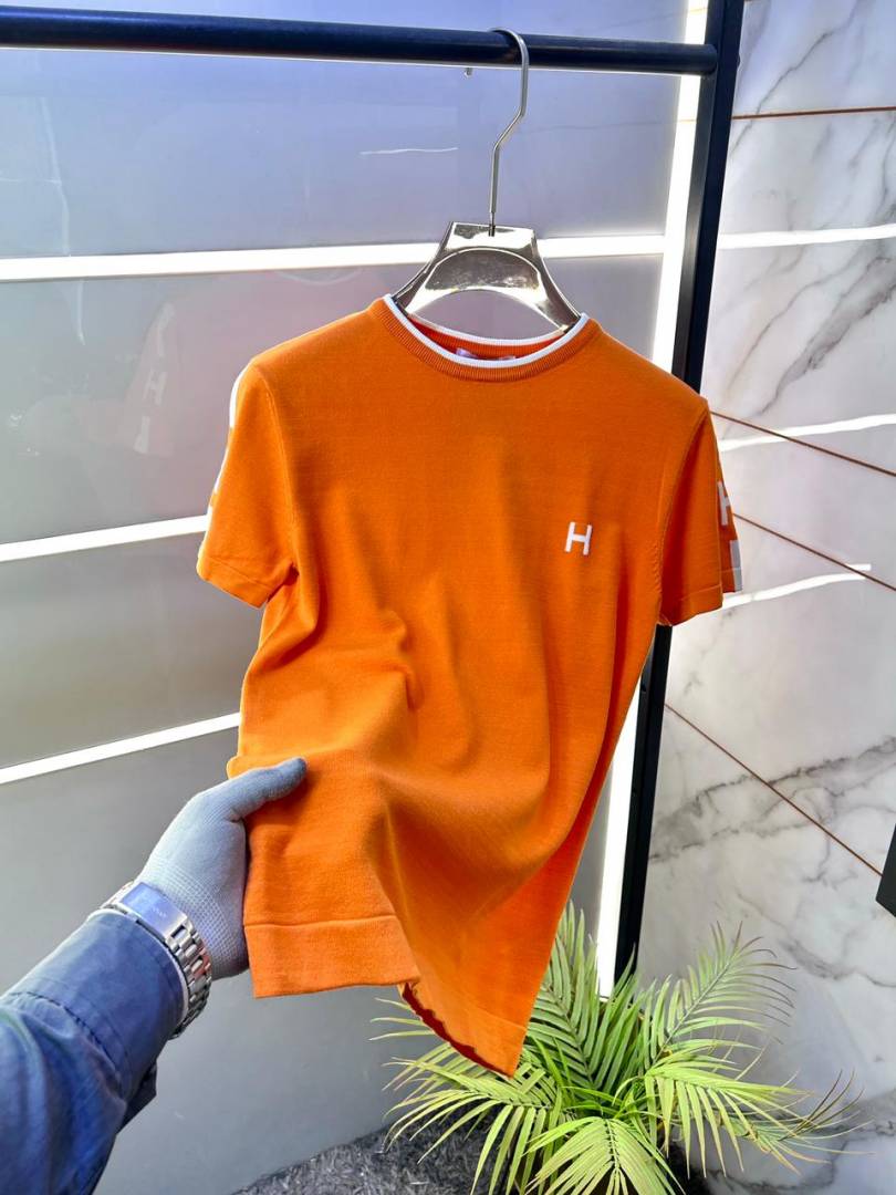 Hermes Logo Imported Orange knitted Polo Super Premium Round Neck T-shirt F3528-OR
