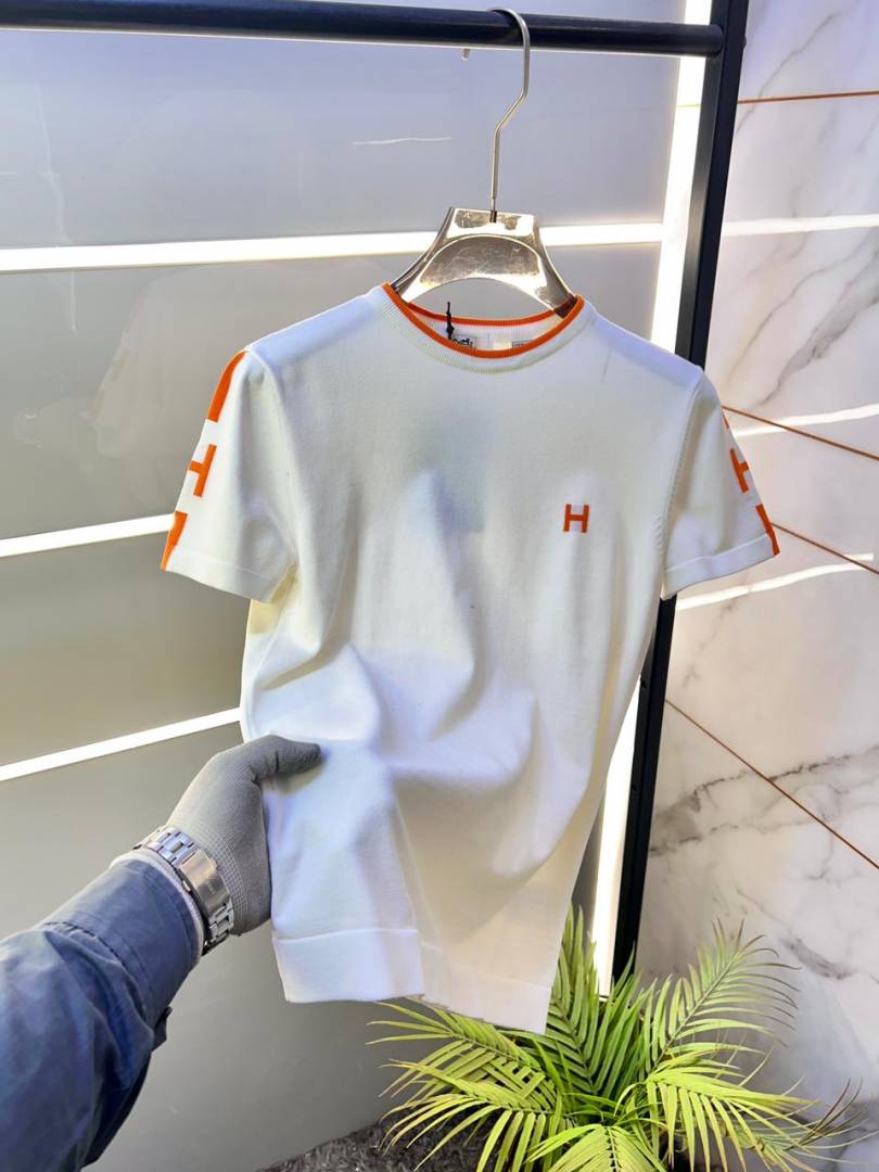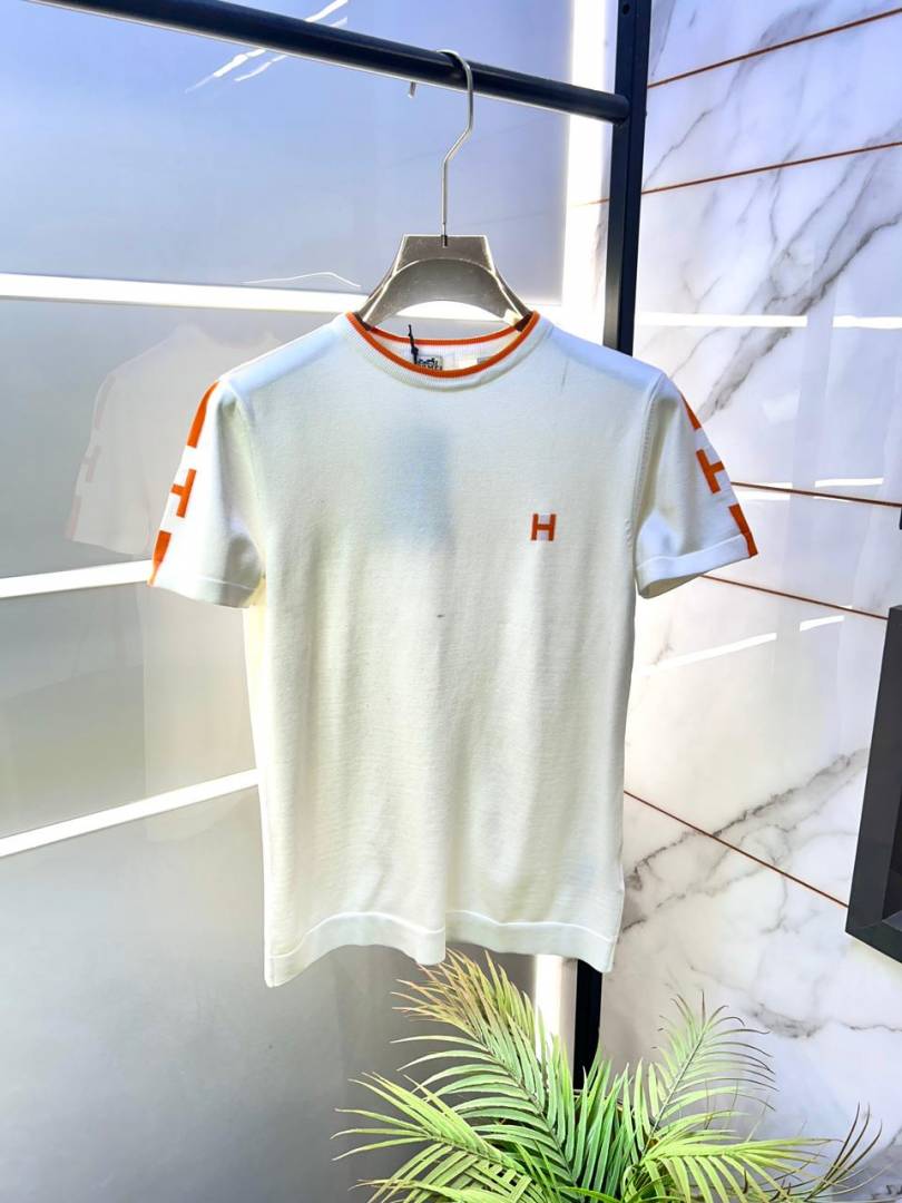 Hermes Logo Imported Off-White knitted Polo Super Premium Round Neck T-shirt F3528-OF