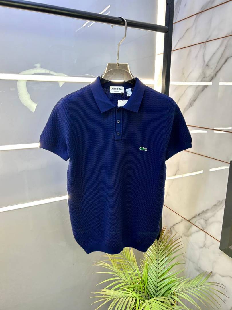 Lacost e Imported knitted Super Premium Navy Collar Neck Polo T-shirt F3466-NY