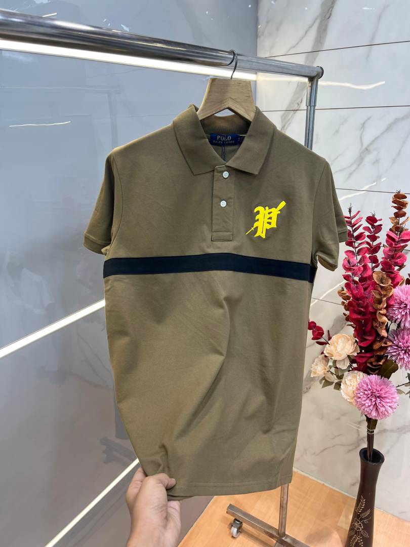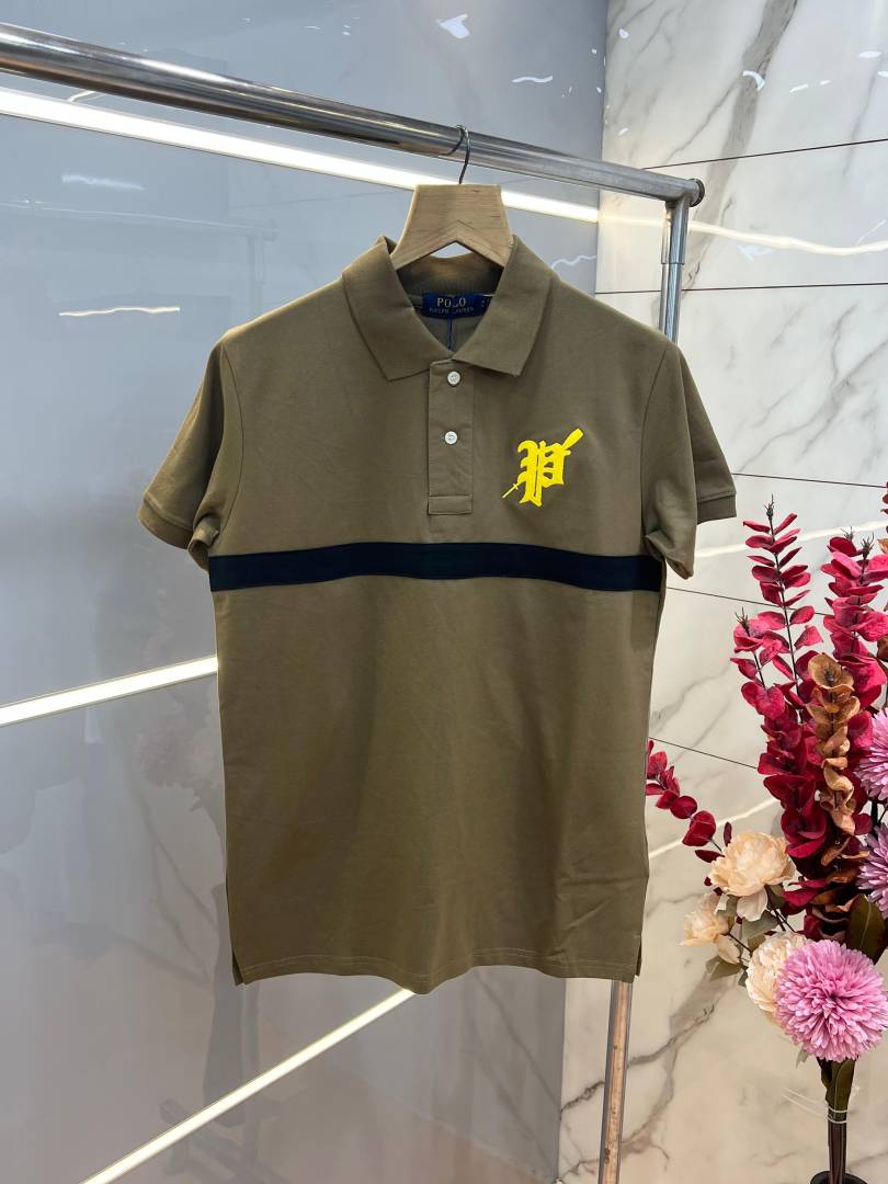Ralp h Laure n olive Premium Cotton Matty fabric Polo Tshirt with Front Design and Embroidered Logo brand box 3825