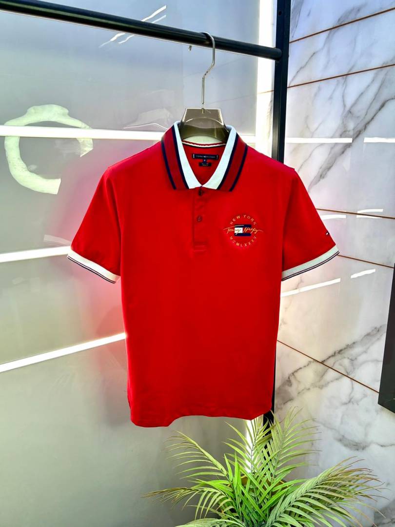 Tommy_Hilfiger Red Embroidery Logo Collar Neck Premium Polo T-shirt F2804-RE