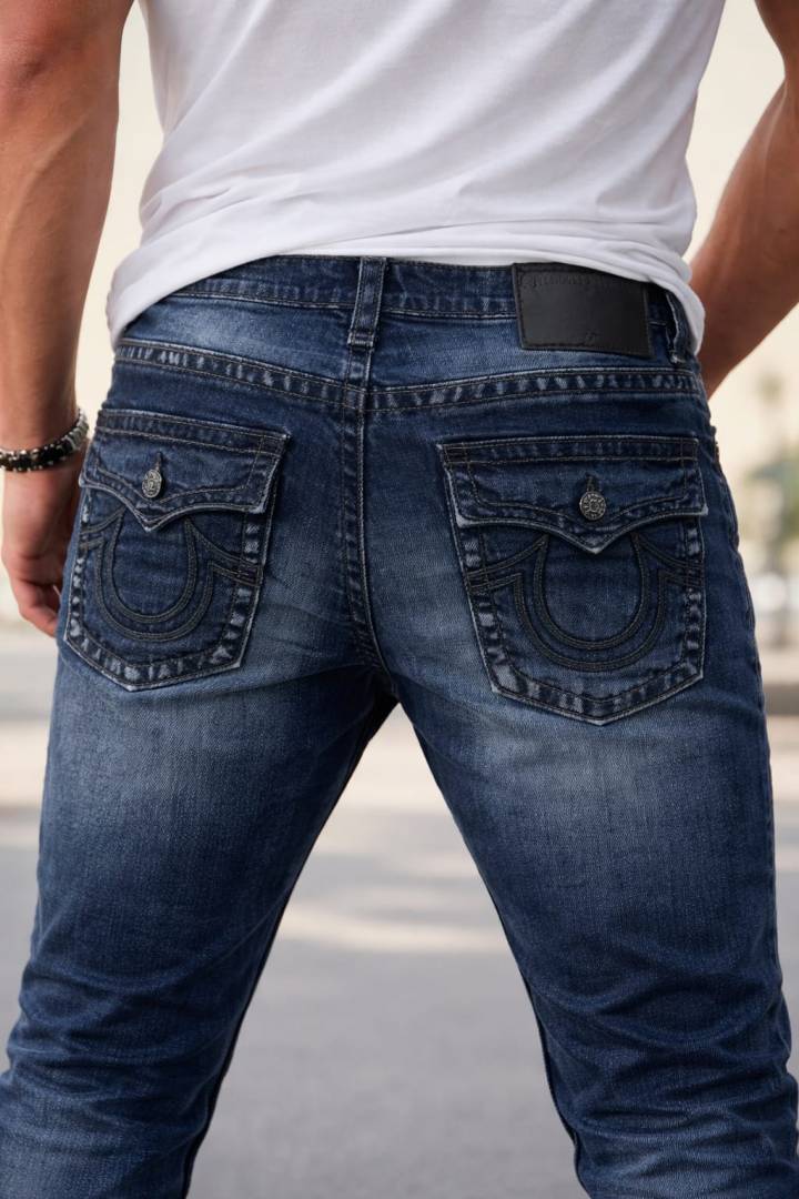True Religio n Blue Shade Straight Fit Premium Imported Stretchable lycra fabric Denim with back flap pocket Design 3780