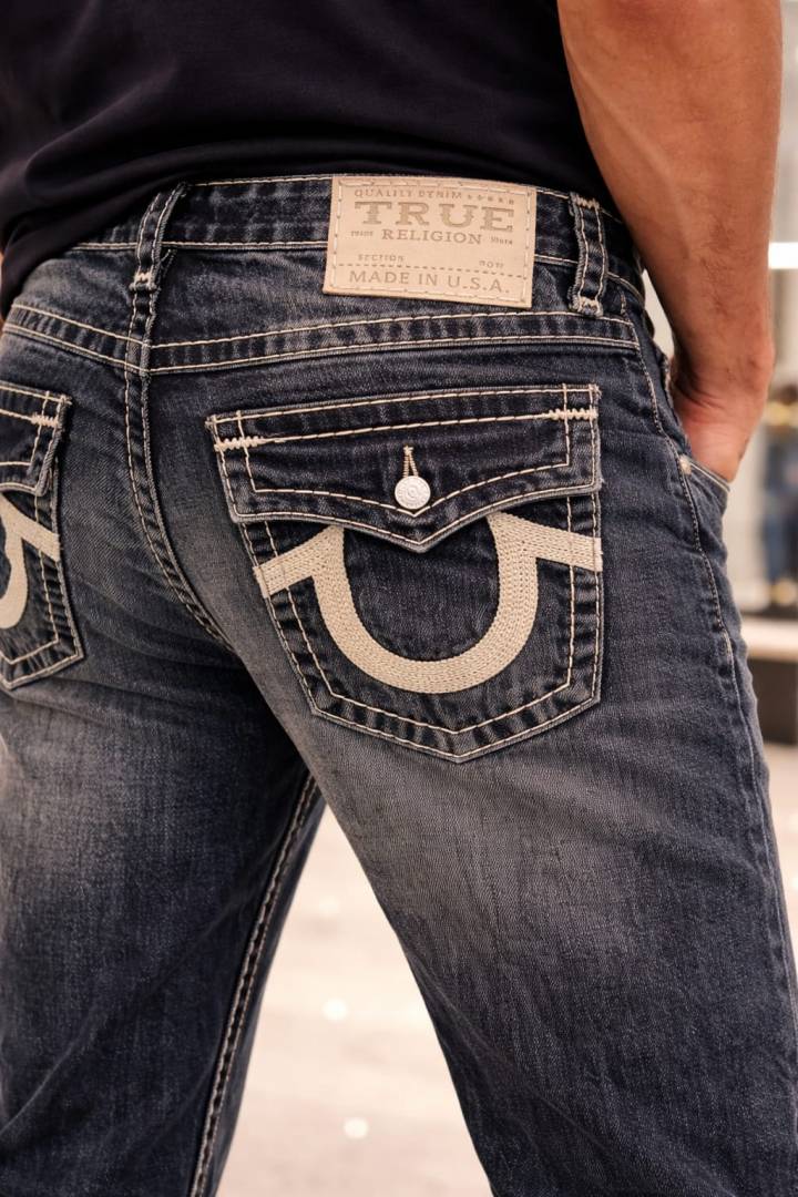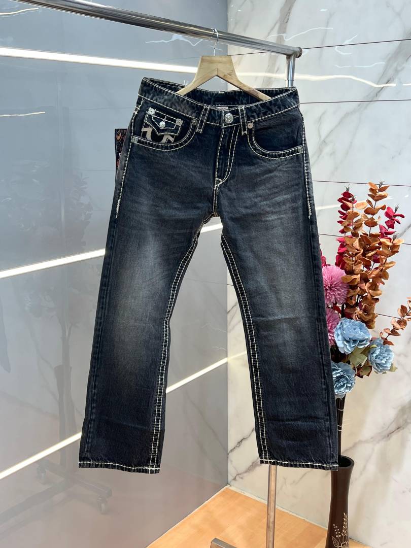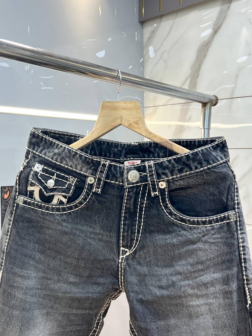 True Religio n Grey Shade Boot cut Premium Imported Stretchable lycra fabric Denim with back flap pocket Design 3775